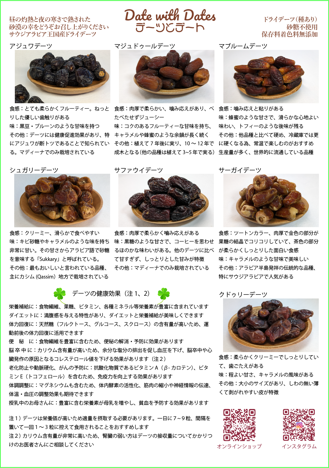 (デーツそれぞれの特徴は、本文下段をご覧ください)